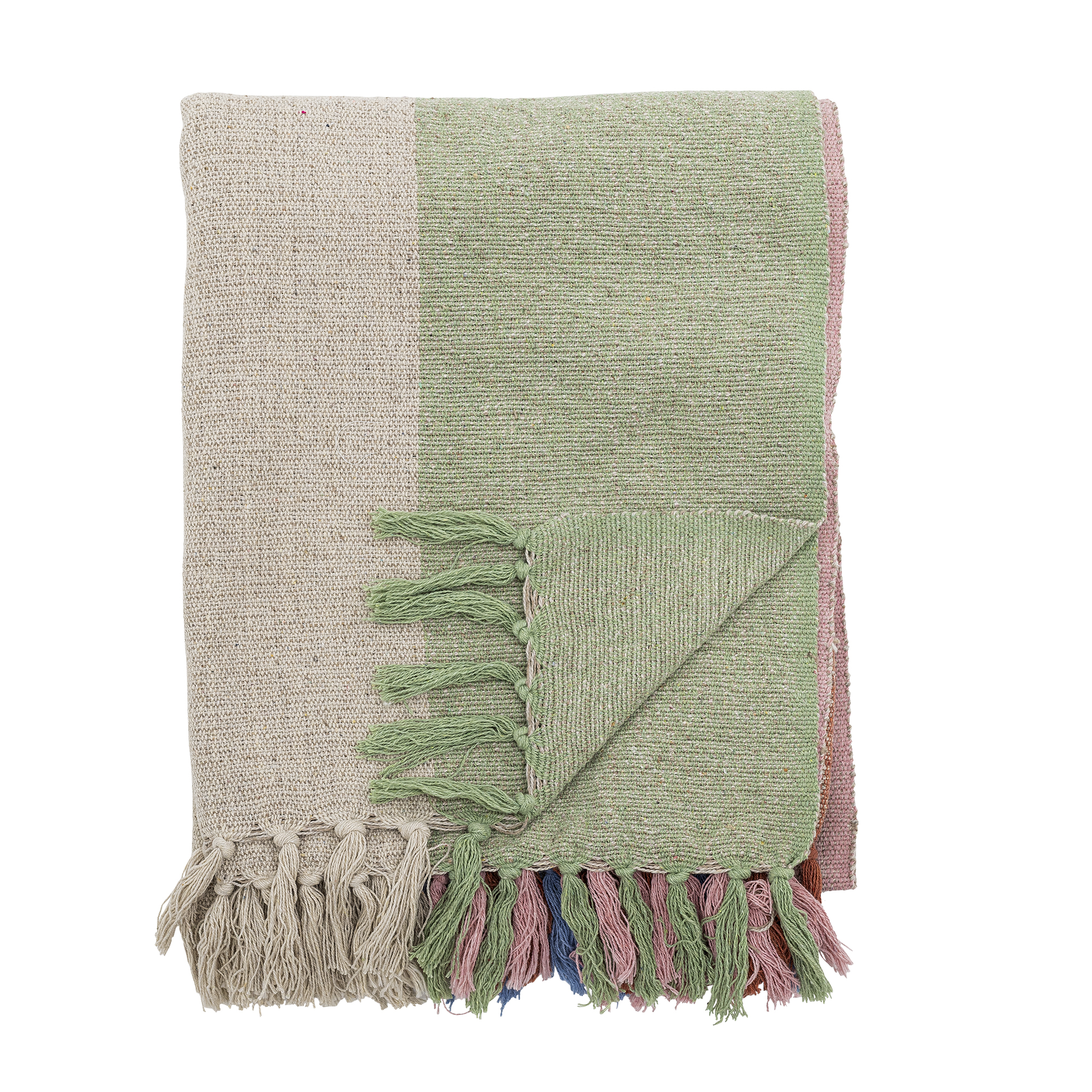 Kitta Throw plaid van Bloomingville MINI is gemaakt van gerecycled katoen in een lichte tint en versierd met strepen in prachtige kleuren. Met de fijne franjes langs de randen is de plaid decoratief en straalt hij een gezellige en warme sfeer uit, waar je hem ook neerlegt.
