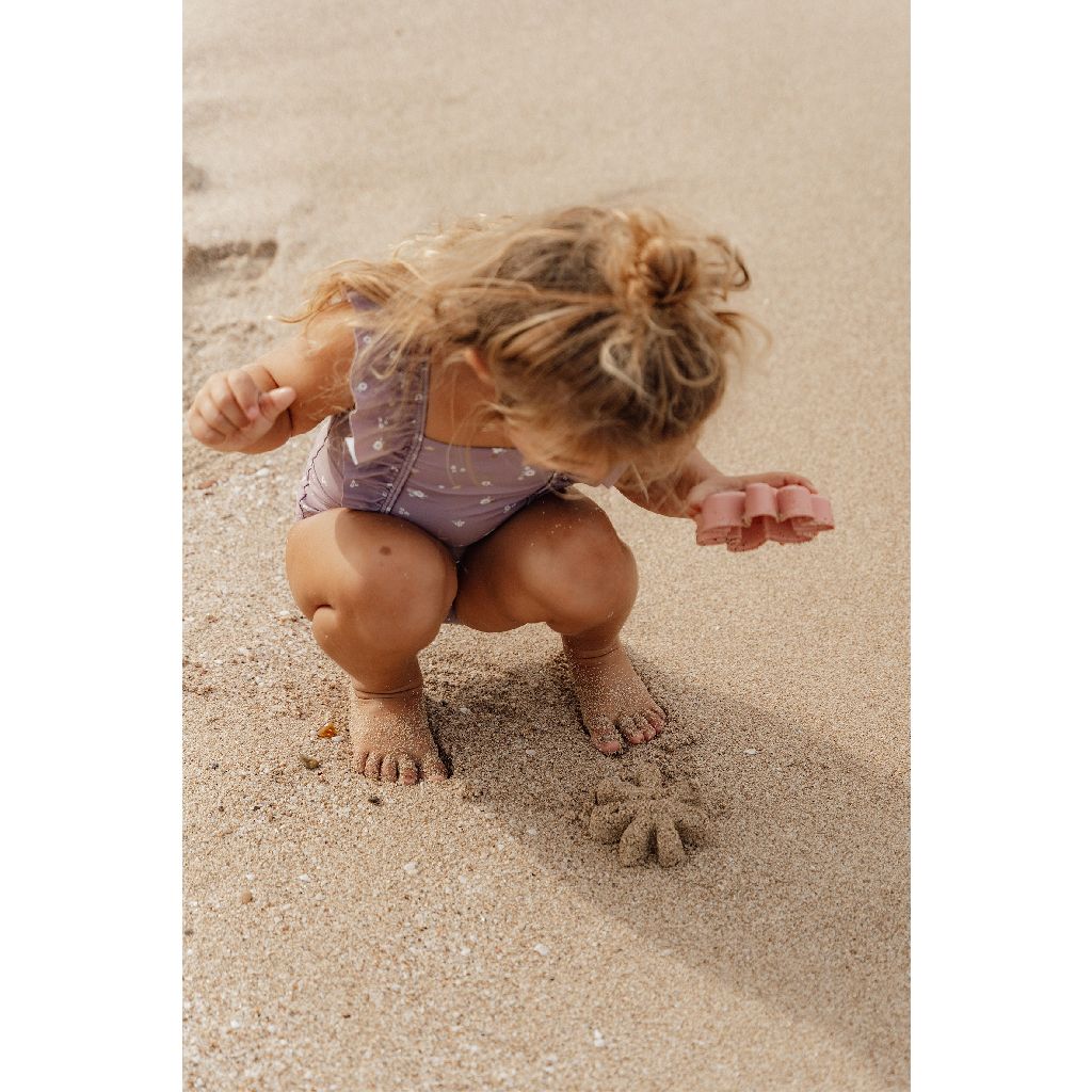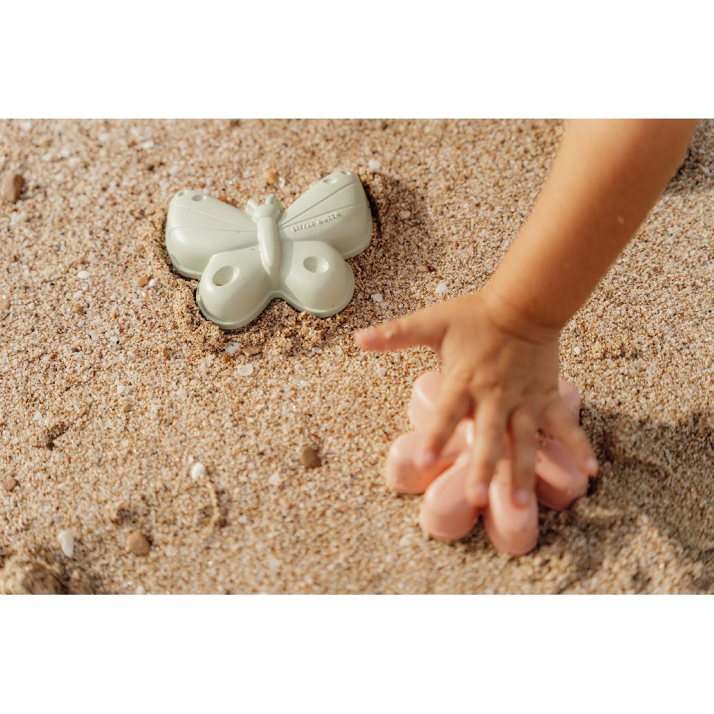 Laten we kunst maken met zand! Met dit schepje en twee vormen kun je al je fantasie gebruiken om prachtige zandkunst maken op het strand of in de zandbak! Strand speelgoed meenemen is een fijne manier om je kleintje een middag lang geïnteresseerd en bezig te houden. Deze set bevat een schepje en twee zandvormen: een roze bloem en een groene vlinder. Allemaal ontworpen voor kleine handjes om een goede grip en veel plezier met zand te hebben.