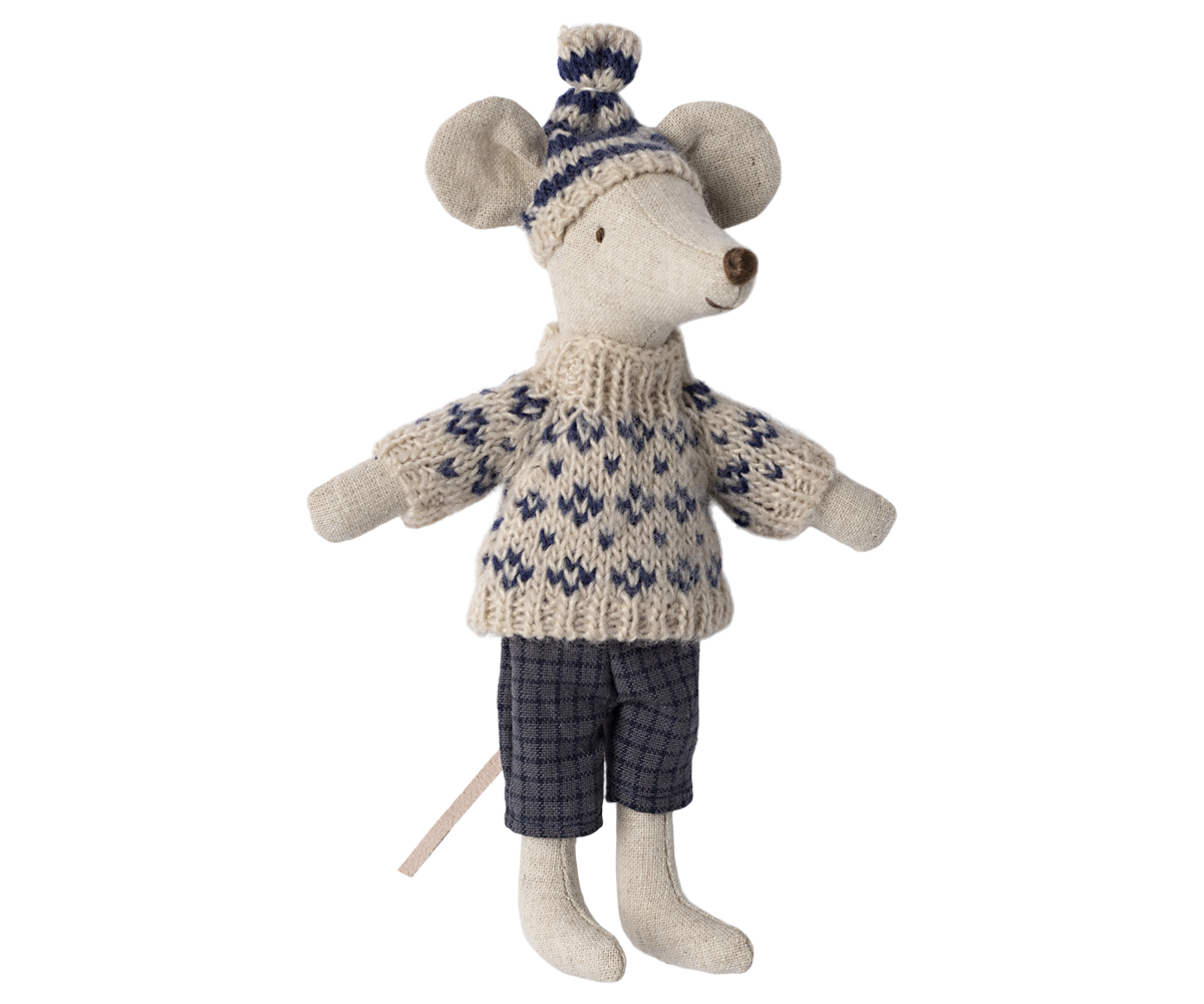 Een muis die klaar is voor urenlang plezier op de piste tijdens de koude winter. Elke speelset bevat een warm aangeklede muis met een paar ski’s en stokken. Kijk eens naar het kleine gebreide mutsje dat de oren warm houd.