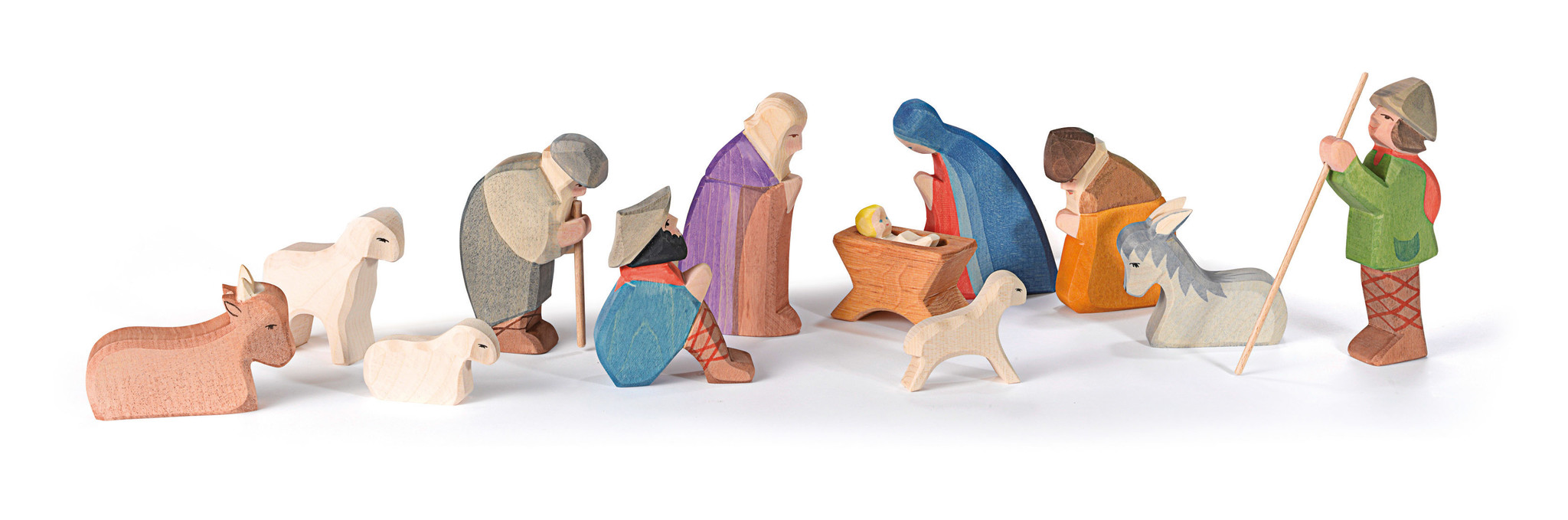 Prachtige 13-delige houten kerststal van het merk Ostheimer.